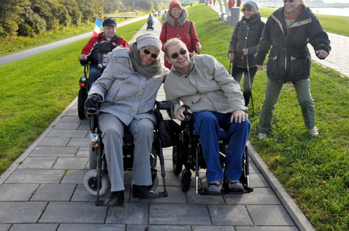 Das Essen im SoVD-Heim ist ausgesprochen lecker und die Zimmer sind zumeist behindertengerecht. Wenn es das Wetter zuließ, machten wir gemeinsame Touren, z.B. auf dem Deich entlang bis zum Leuchtturm an der Hafeneinfahrt oder bis zur Perlebucht im Norden. Jeder MS-Betroffene fand sofort helfende Hände aus der Gruppe, die gerne den Rollstuhl schoben. Nach einem langen Spaziergang konnte man sich mit einem „Pharisäer, einer „Toten Tante“ oder Ähnlichem belohnen. Auf einen Fachvortrag zu MS haben wir in diesem Jahr verzichtet. Schließlich sind die Betroffenen durch individuelle Betreuung ihrer Neurologen über ihre Krankheit, deren Behandlungsmöglichkeiten und den vermutlichen Verlauf gut informiert.